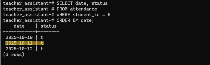 By the end, the database will think for itself — staying accurate, up to date, and fully in sync with the Teacher Assistant App, without a single line of extra logic in Rust.