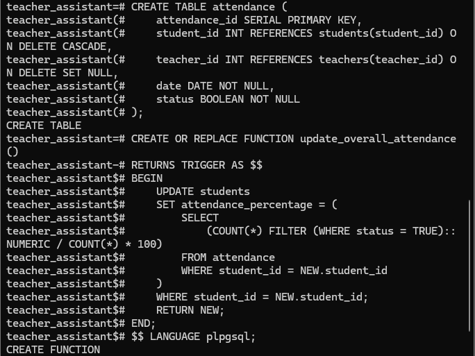 With this, our Teacher Assistant App’s database is now intelligent, self-sustaining, and ready for expansion.